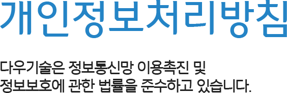 ㈜ 다우기술(이하 “회사”)은 「개인정보보호법」 제 30조에 따라 이용자(정보주체)의 개인정보를 보호하고 이와 관련한 고충을 신속하고 원활하게 처리할 수 있도록 하기 위하여 다음과 같이 개인정보처리방침을 수립•공개합니다.