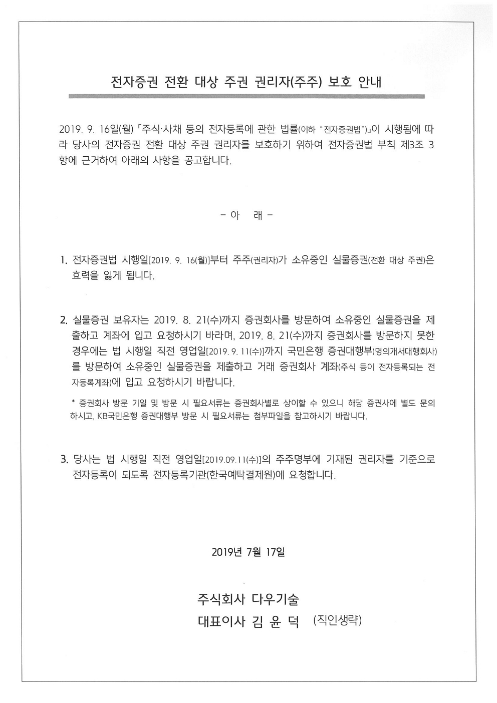 [공고] 전자증권 전환 대상 주권 등의 권리자 보호 안내