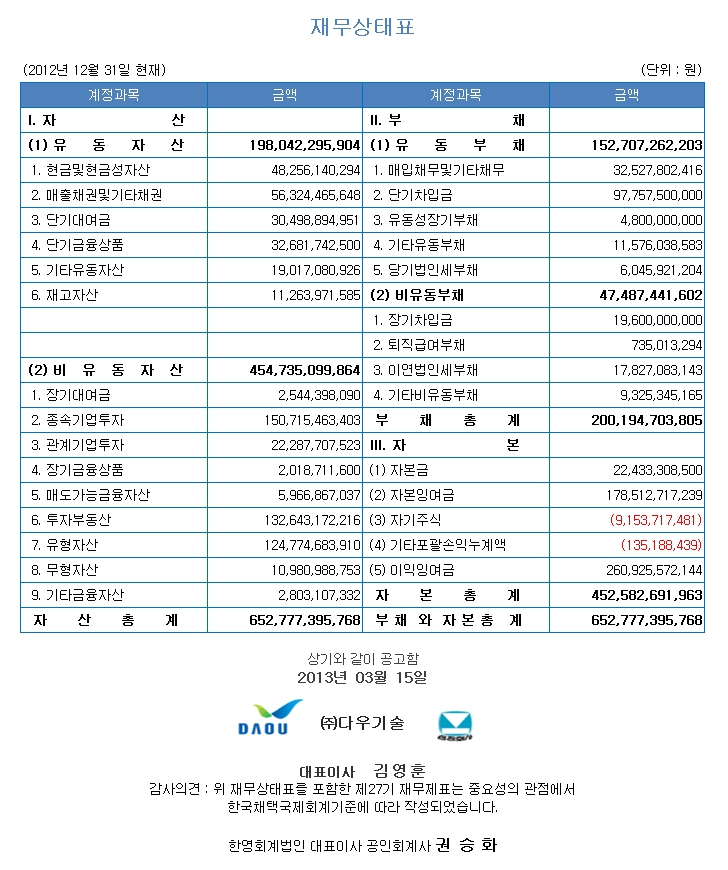 [공고] 제 27기 결산 공고 - 별도 재무상태표