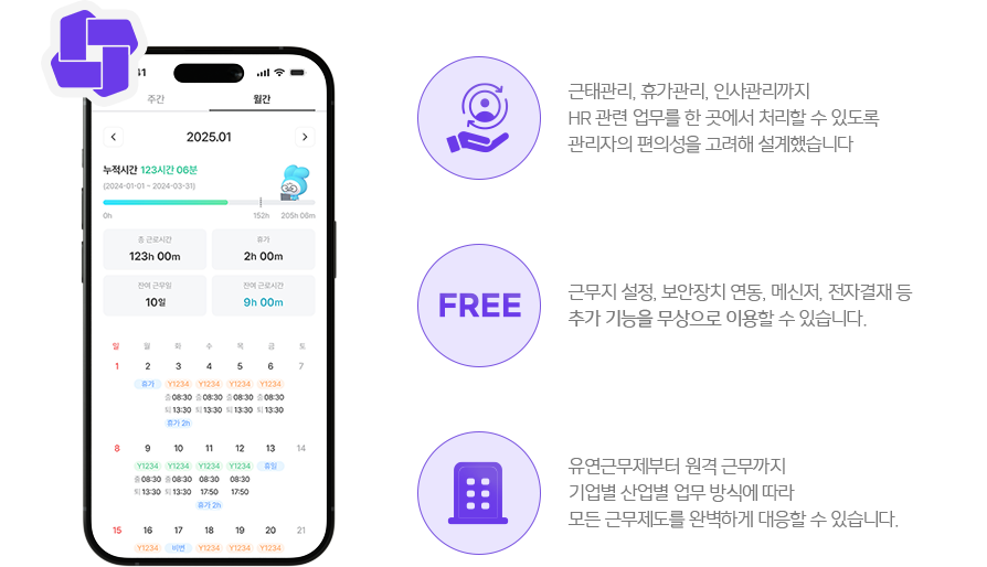 근태·휴가·인사정보관리를 하나의 서비스로 통합했습니다.